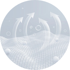 通過專利技術(shù)微孔結(jié)構(gòu)設(shè)計賦予材料高透氣性,其獨有的微孔結(jié)構(gòu)可促進濕氣快速擴散,減少悶熱感。適用于床墊、枕頭、坐墊等家居墊材。