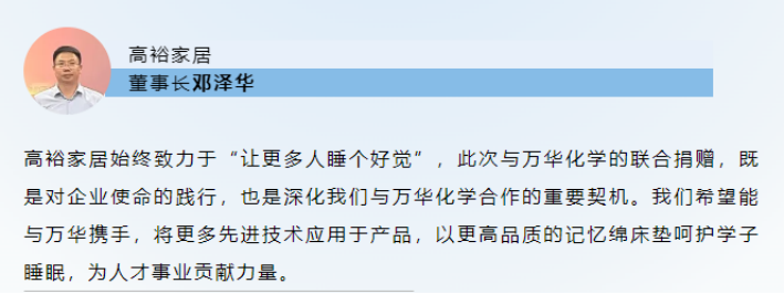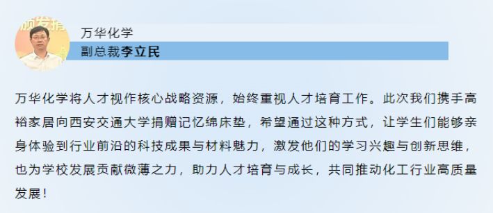 高裕家居攜手萬(wàn)華化學(xué),向西安交通大學(xué)捐贈(zèng)記憶綿床墊